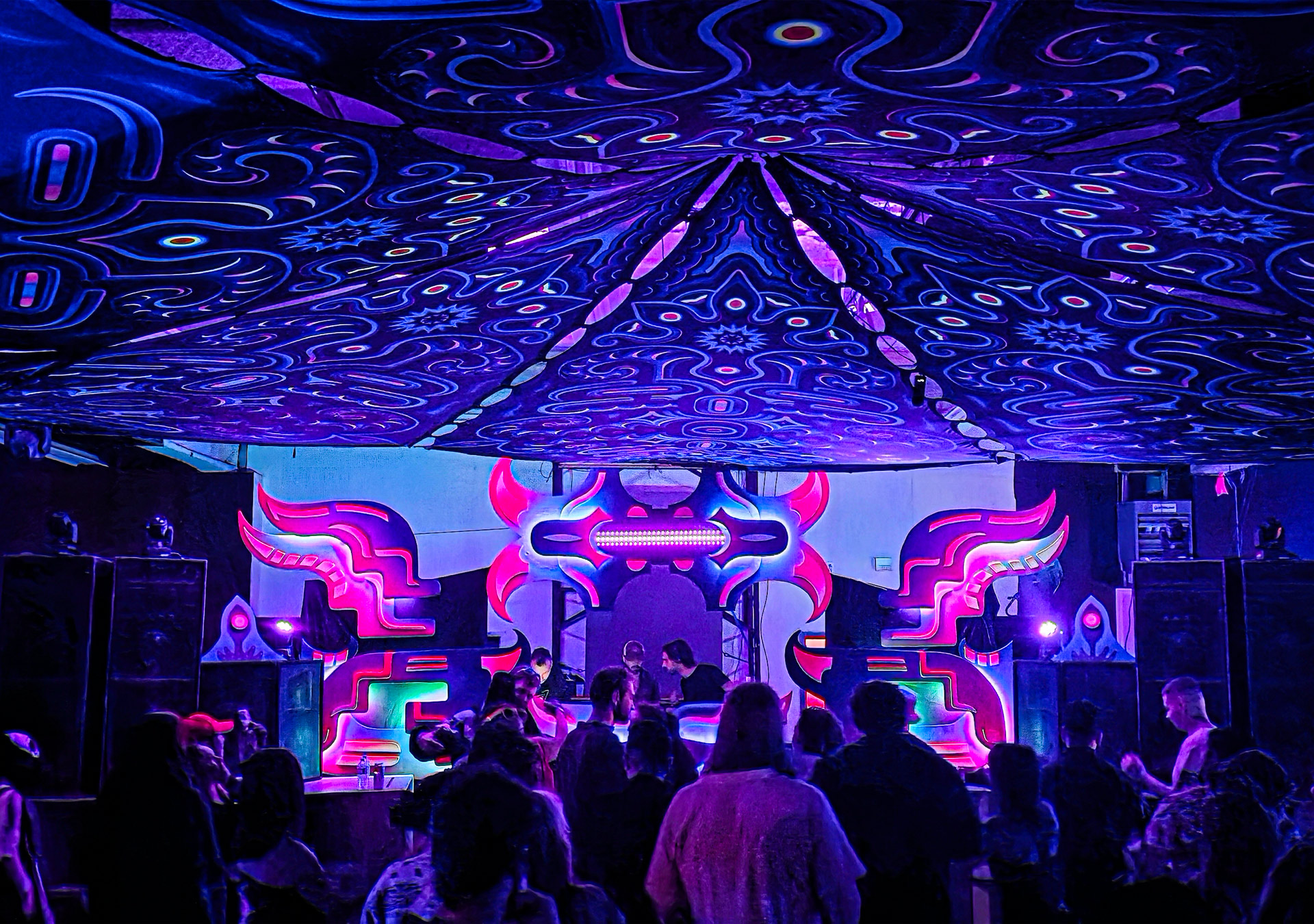 Pour la scène, nous avons réinvesti notre décor d’Halloween, agrémenté de quelques modules supplémentaires. @1ns0mn1c a glissé avec subtilité des bandes LED entre les couches, et un écran LED central est venu couronner le tout, apportant la touche finale.